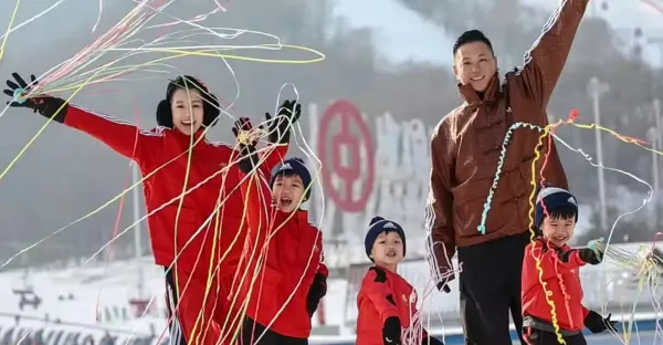 胡杏兒和老公帶三個兒子去吉林滑雪,一家五口在雪地玩耍,好歡樂