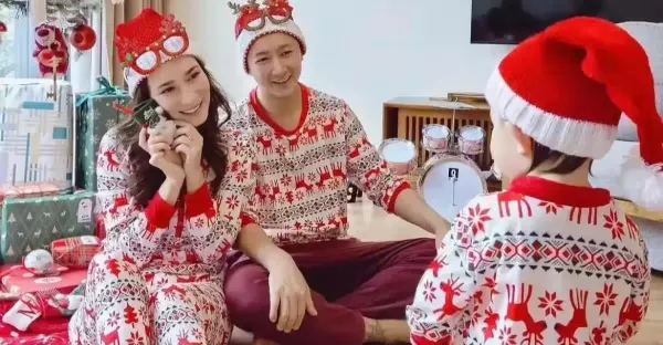 盧靖姍曬聖誕節全家福,2歲女兒跟爸爸撒嬌,韓庚一臉寵溺好有愛