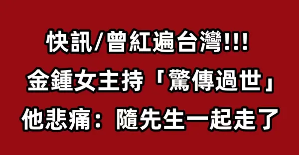 快訊/曾紅遍台灣!!! 金鐘女主持「驚傳過世」他悲痛:隨先生一起走了