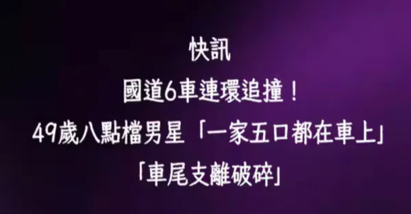 快訊/國道6車連環追撞!49歲八點檔男星「一家五口都在車上」「車尾支離破碎」驚險過程曝
