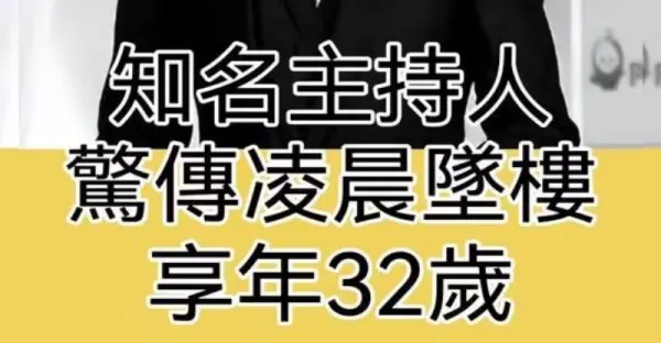 知名主持人 驚傳凌晨墜樓, 享年32歲