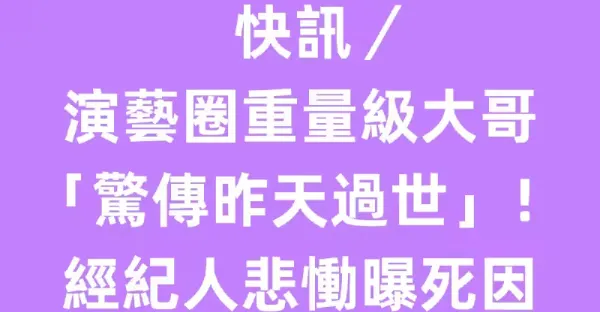 快訊/演藝圈重量級大哥「驚傳昨天過世」!經紀人悲慟曝死因