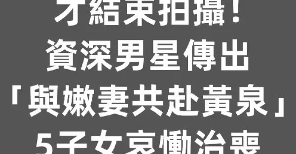 才結束拍攝!資深男星傳出「與嫩妻共赴黃泉」...5子女哀慟治喪