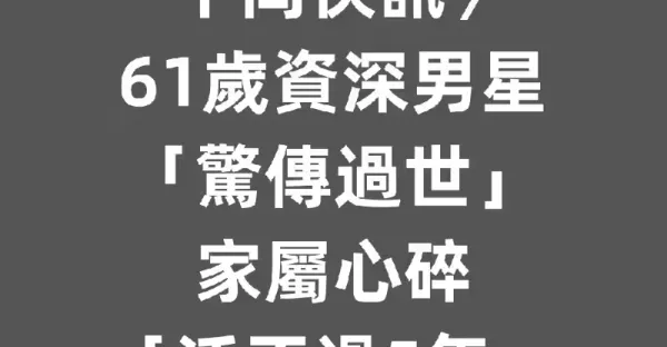 午間快訊/61歲資深男星「驚傳過世」!家屬心碎「活不過5年」