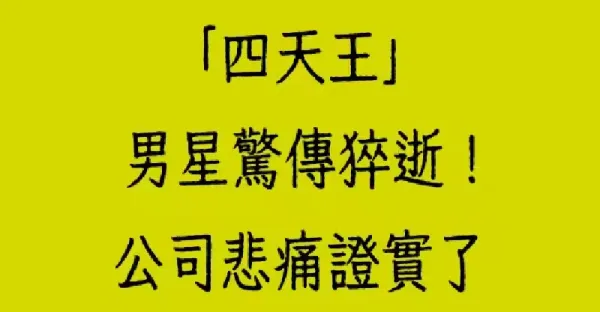 「四天王」男星驚傳猝逝!公司悲痛證實了