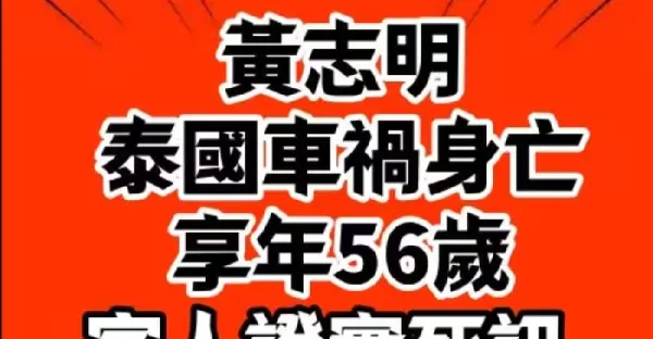 黃志明泰國交通事故身亡享年56歲 家人證實死訊「遺體運回大馬」!