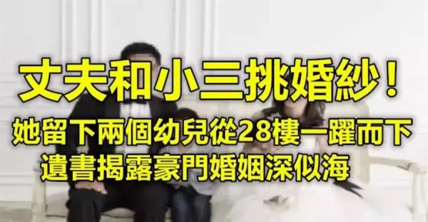 丈夫和小三挑婚紗!忍耐許久的她「留下兩個幼兒」從28樓一躍而下 遺書揭露「豪門婚姻深似海」