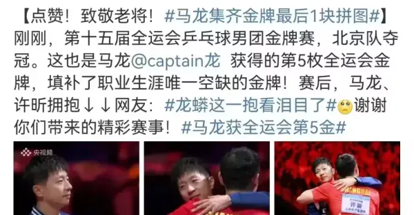 許昕:沒馬龍強不丟人!「龍蟒這一抱看淚目了」