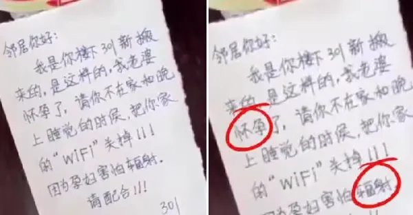 鄰居貼紙條內容是「家有孕婦,請配合關無線網絡」,隔天她超霸氣「貼紙回應」,嚇的對方「不敢再提」