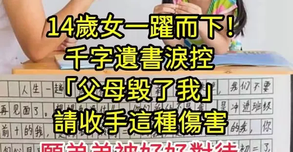 14歲女一躍而下!千字遺書淚控「父母毀了我」:請收手這種傷害 願弟弟被好好對待「盼來生別再相見~」