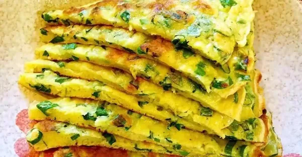 2個雞蛋,一勺麵粉,攪一攪、烙一烙,5分鐘做好全家早餐