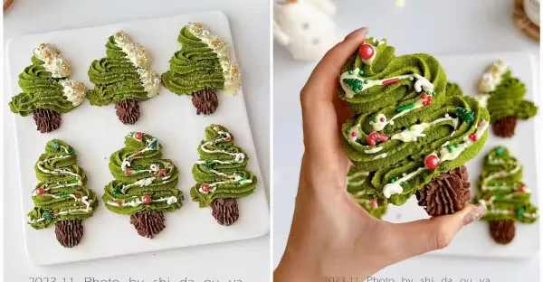 聖誕樹🎄抹茶巧克力曲奇餅乾❗️簡單無模具