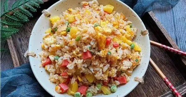 菠蘿也能吃出來花樣,跟剩米飯一炒,酸甜開胃