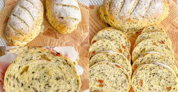 免揉面黑芝麻提子麵包,簡單好做,柔軟拉絲