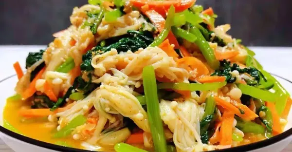 茼蒿涼拌胡蘿蔔金針,鮮嫩可口,讓你食慾大增!