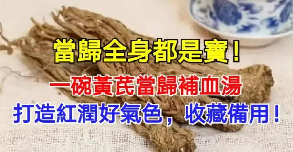 當歸全身都是寶!一碗黃芪當歸補血湯,打造紅潤好氣色,收藏備用!