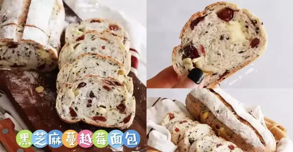 🥖黑芝麻蔓越莓麵包,無油糖無需揉面🉑