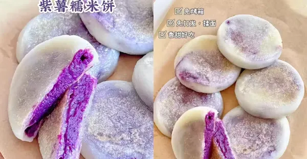 免烤箱,糯嘰嘰紫薯糯米餅,香甜軟糯0失敗