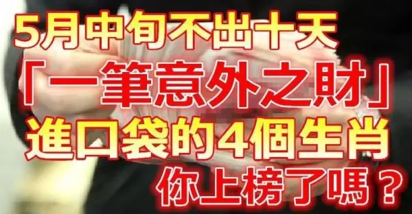 五月中旬不出十天會有(一筆意外之財)進口袋的生肖,你上榜了嗎?