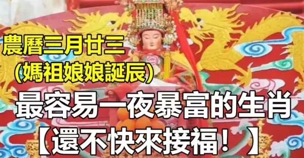 農曆三月廿三(媽祖娘娘誕辰)最容易一夜暴富的生肖【還不快來接福!】