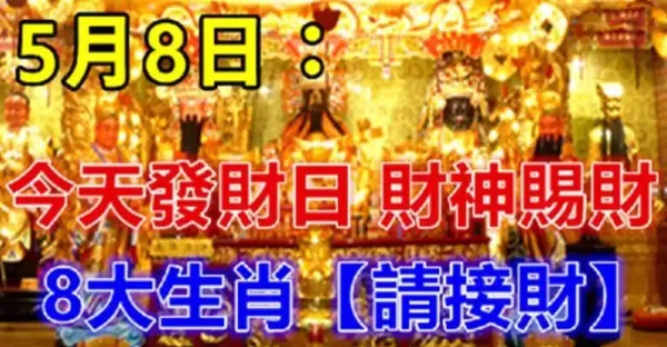 5月8日發財日,財神爺賜財,八大生肖請接財