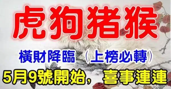 5月9日後有頭獎運,這些生肖接福接好運