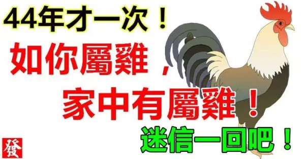 如果你不屬雞,你最愛的人屬雞,或家中有屬雞,44年才一次!迷信一回吧!