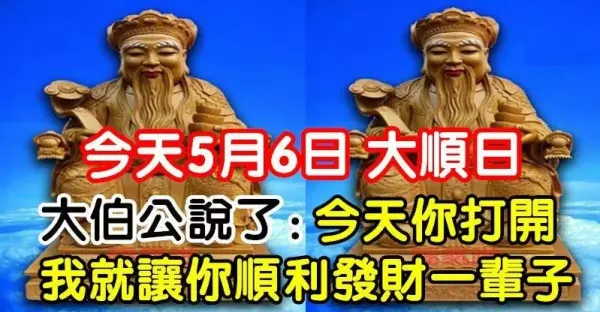 今天5月6大順日,大伯公說了:今天你打開,我就讓你順利發財一輩子