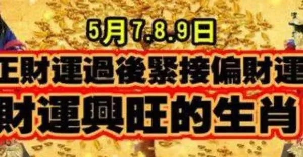 5月7.8.9日正財運過後緊接偏財運,財運興旺的生肖
