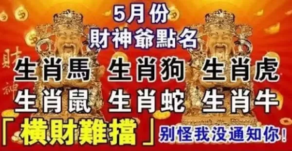 財神爺點名這六生肖,五月份橫財難擋,萬事皆順