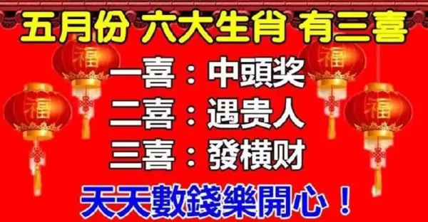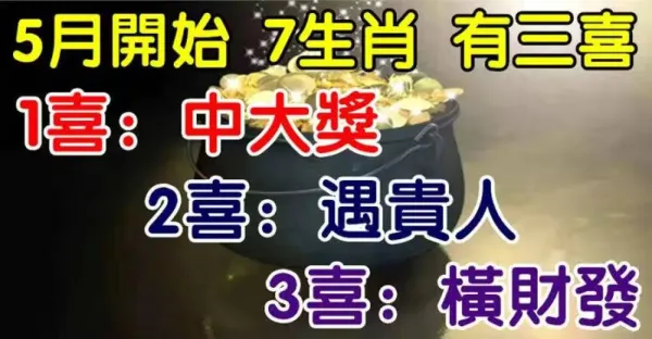 5月開始有三大喜的七生肖:一喜中大獎,二喜遇貴人,三喜橫財發