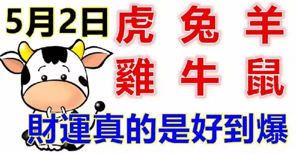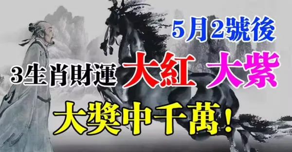 5月2號後財運大紅大紫,橫財大發特發,大獎中千萬的生肖