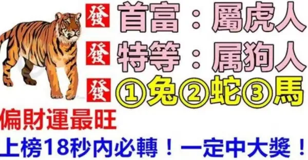 4月29日接財神,一直旺到5月1日中頭獎,上榜生肖一定要轉