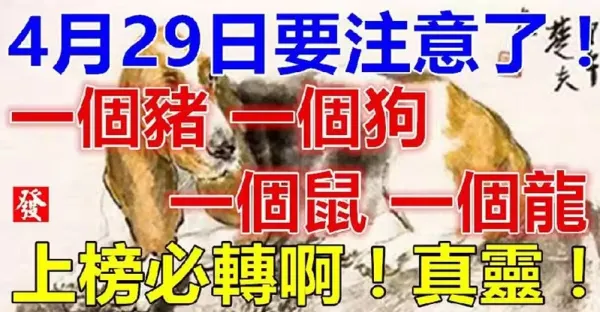 4月29日要留意了,一個豬, 一個狗,一個鼠,一個龍必轉