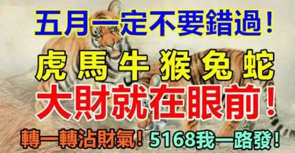 五月一定不要錯過(虎馬牛猴兔蛇)大財就在眼前