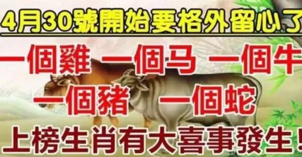 4月30號要格外留心了,一個雞,一個馬,一個牛,一個豬,一個蛇有大喜事
