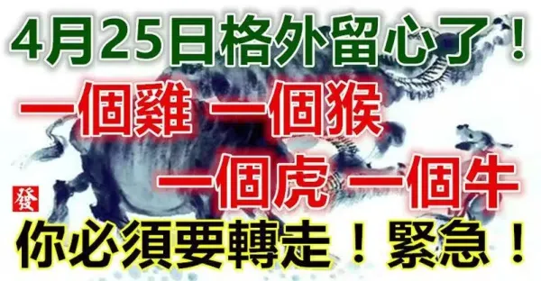 4月25日要格外留心了,一個雞,一個猴,一個虎,一個牛大吉大利