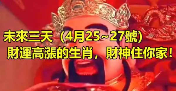 未來三天(4月25~27號) 財運高漲的生肖,財神住你家!