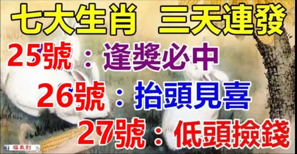 七大生肖,運氣好~25號逢獎必中,26號抬頭見喜,27號低頭撿錢