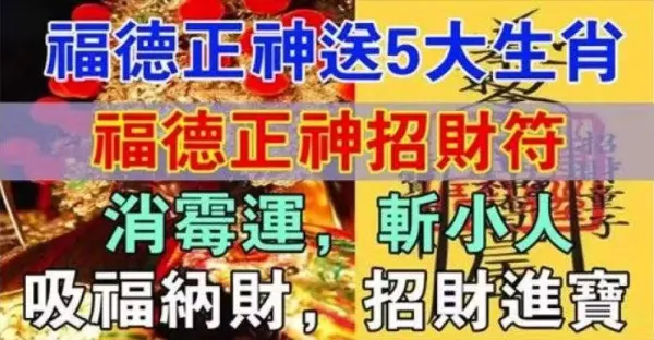 福德正神送五大生肖招財符,吸福納財,招財進寶快來接