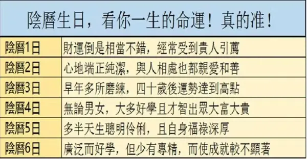 陰曆生日,看你一生的命運
