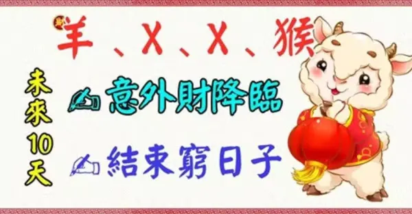未來10天(羊、X、X、猴)有意外財降臨,結束窮日子