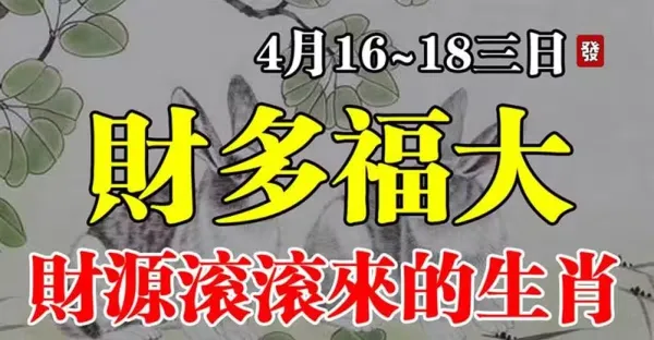 4月16號開始,這幾個生肖大筆鈔票滾滾來快來接