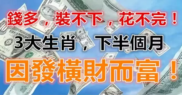 錢多裝不下花不完,三大生肖下半個月因發橫財而富