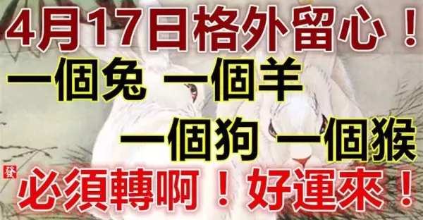 4月17日要格外留心了,一個兔,一個羊,一個狗,一個猴必須轉啊