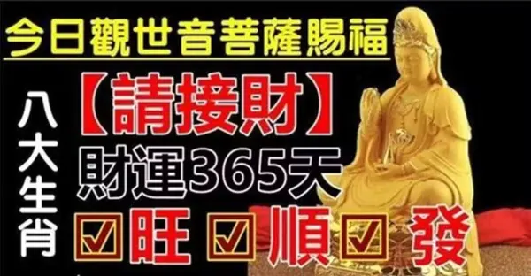 今日觀世音菩薩賜福,八大生肖請接財,財運旺順發