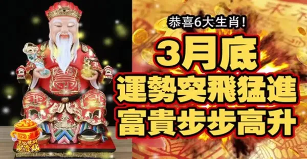 3月底運勢突飛猛進,富貴步步高升的六大生肖
