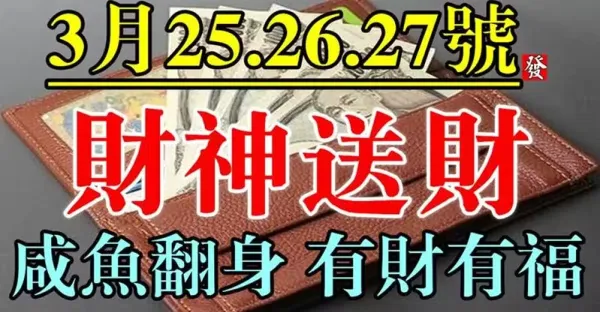 3月25.26.27號財神送財,鹹魚翻身的生肖