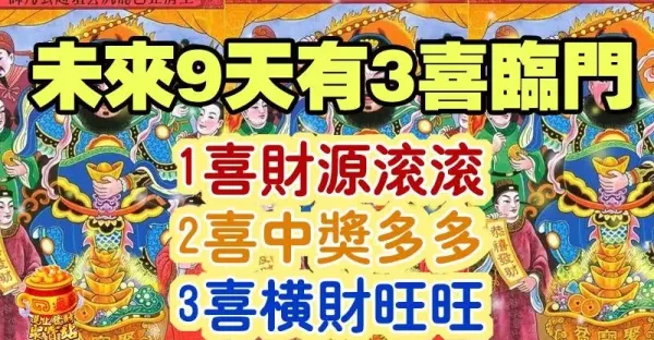 未來9天有3喜臨門,1喜財源滾滾,2喜中獎多多,3喜橫財旺旺