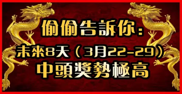 未來八天3月22到29日中頭獎勢極高的生肖